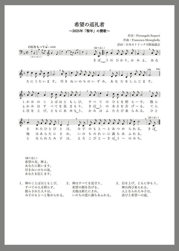 20日(土)より、土曜日ミサ前5分程度、聖年の聖歌「希望の巡礼者」の練習を行っています。
